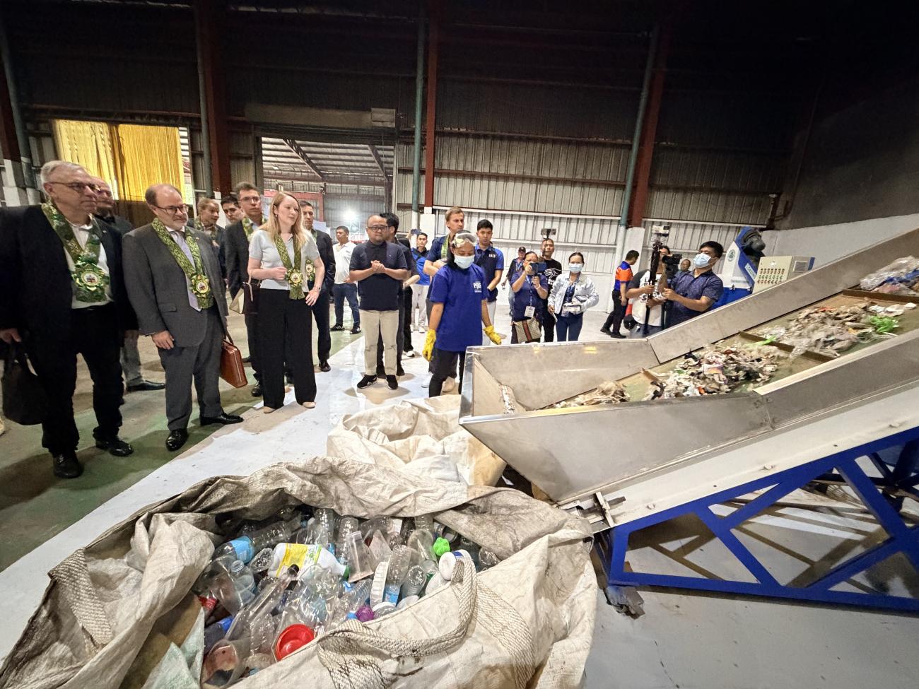 The tour started with a visit to Pasig City’s Innovation for Circular Economy (ICE) Hub. A joint initiative by the city and the United Nations Development Programme (UNDP), the facility is supported by the European Union and the Government of Japan. Pasig City Mayor Vico Sotto welcomed the delegation to the facility that was previously a simple waste sorting site but has since become the centrepiece of Pasig’s Circular Economy Portfolio. The ICE Hub houses machinery for upcycling, recycling, composting and other forms of sustainable waste management, as well as training and research centres for the development of circular economy enterprises.